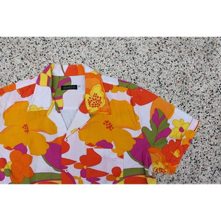 蔣柒 Uomo Vintage 古著白底橘彩花老品夏威夷襯衫花襯衫美品現貨夏日短袖襯衫印花襯衫 Yahoo奇摩拍賣
